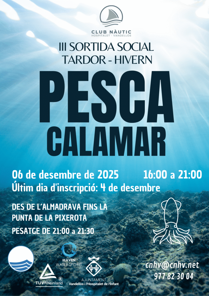 El 6 de diciembre de 2025, el mar volverá a ser el gran protagonista en el Club Nàutic Hospitalet-Vandellòs con la celebración de la III Sortida Social Tardor-Hivern de Pesca del Calamar, una cita ya consolidada en el calendario de eventos del club y muy esperada por los amantes de la pesca recreativa.